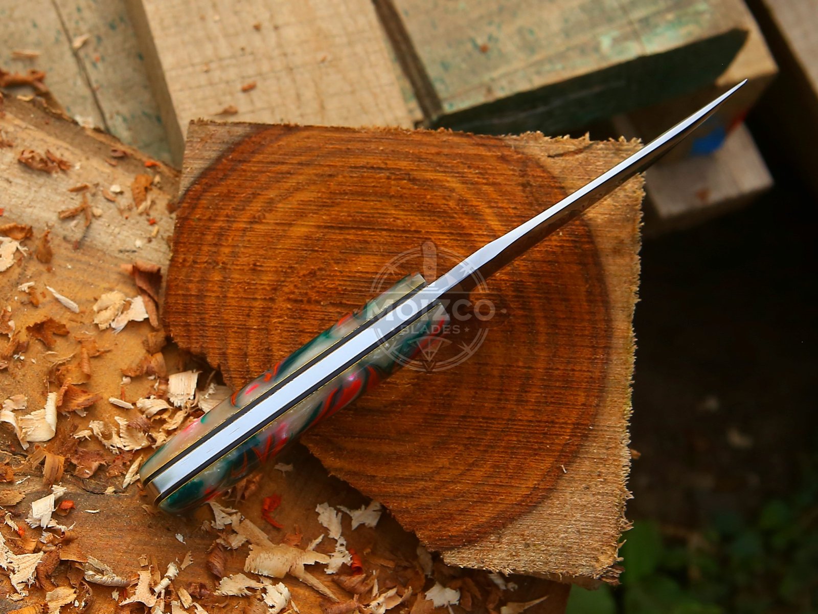 Its custom resin handle offers a stunning visual appeal and an incredibly smooth, ergonomic grip. The balanced 9-inch construction provides excellent control, making it equally suited for collectors, chefs, and outdoor enthusiasts who demand both style and cutting performance.