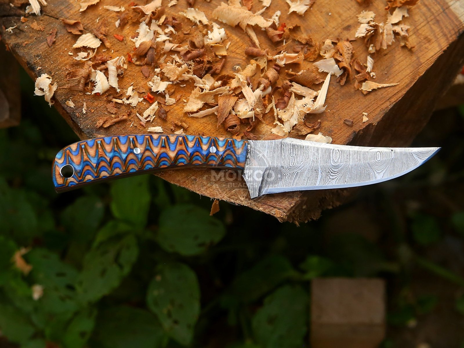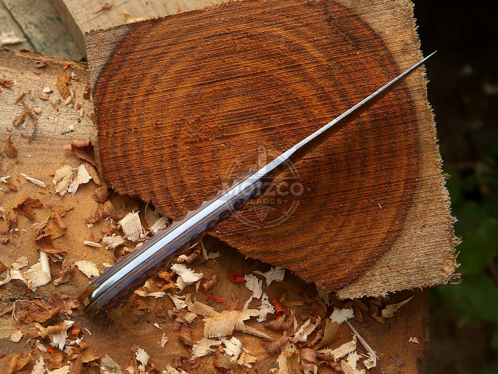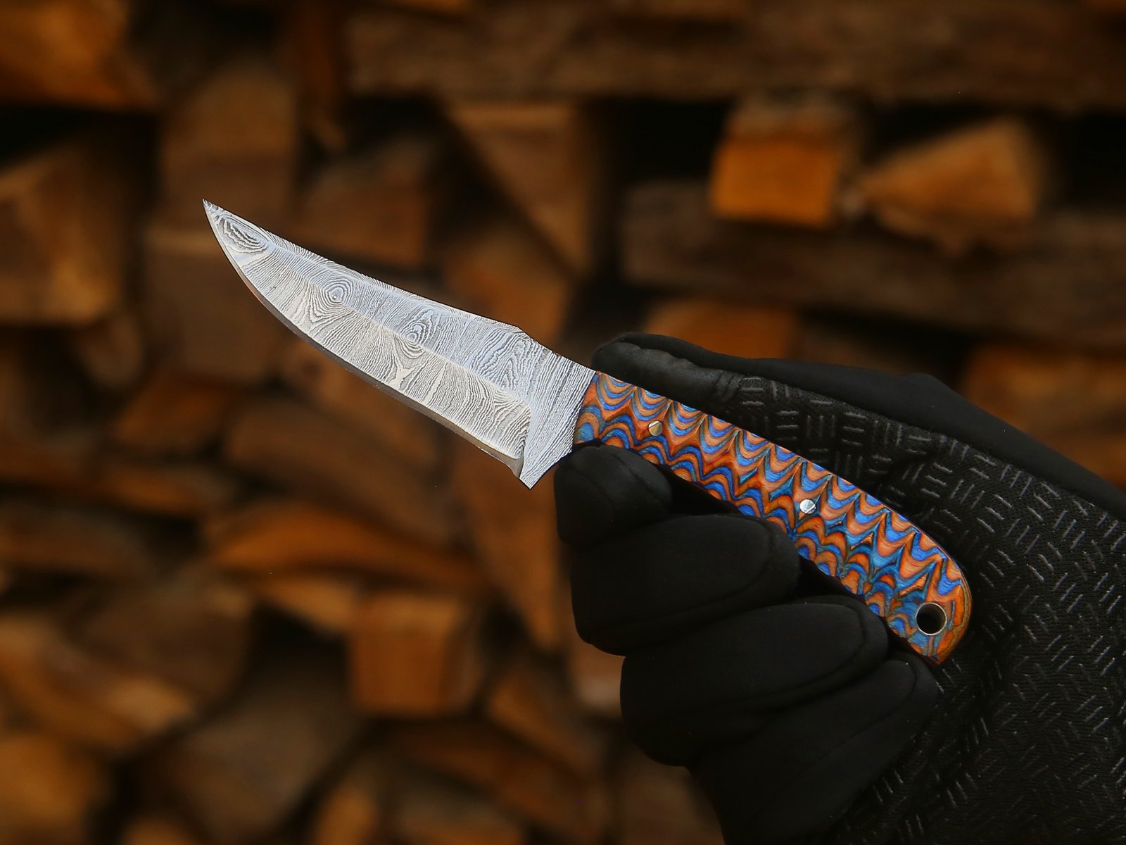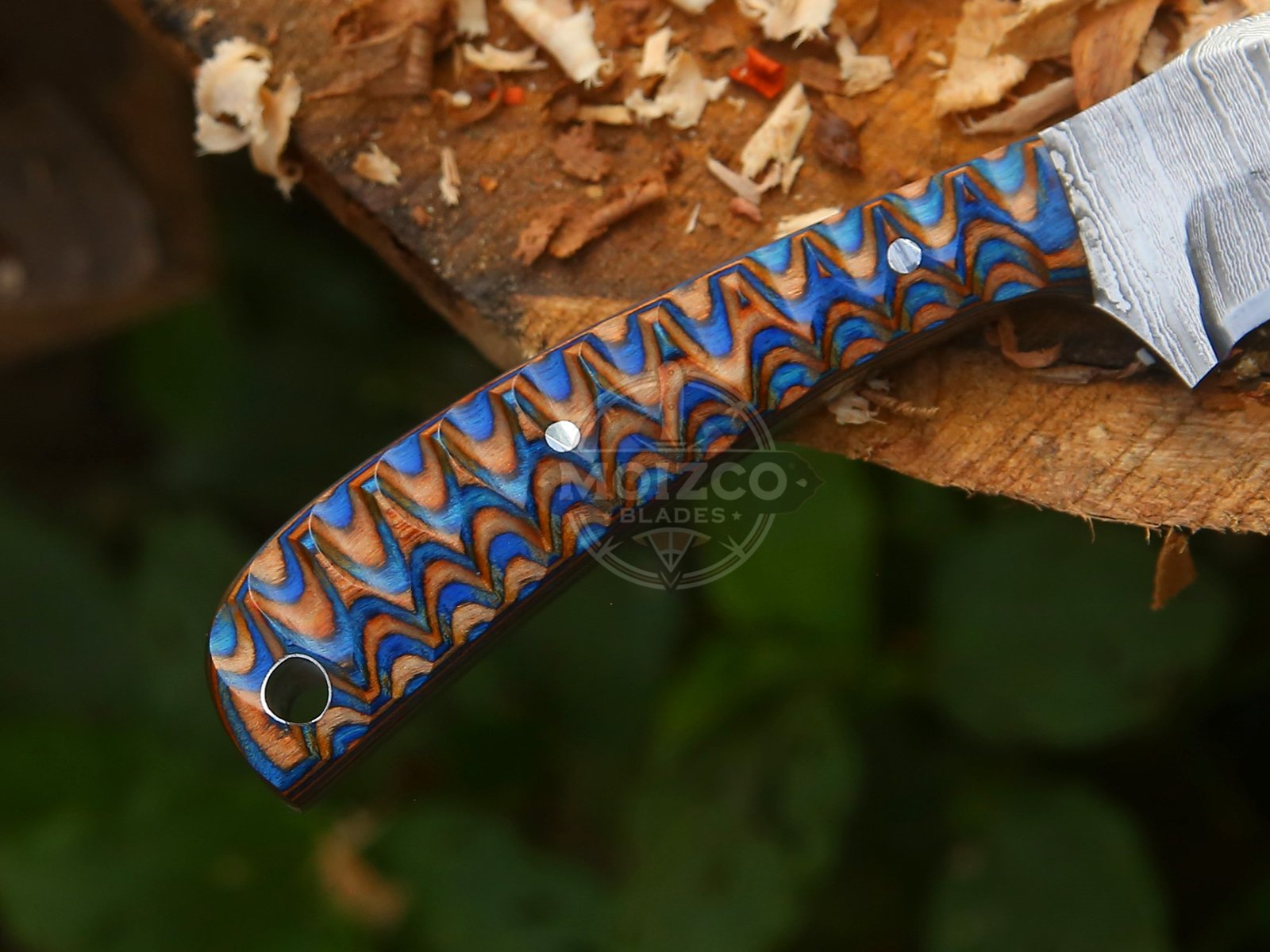 Handle Material: Premium Multicolor Micarta (Orange-Blue Wave Pattern)