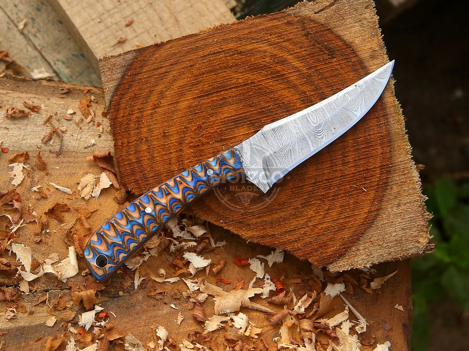 This custom hunting knife features a razor-sharp Damascus steel blade, forged from high-carbon layers that create the mesmerizing wave pattern unique to real Damascus steel. Each blade is hand-forged, heat-treated, and sharpened to deliver exceptional edge retention, toughness, and cutting precision — perfect for hunting, skinning, camping, and everyday carry (EDC).